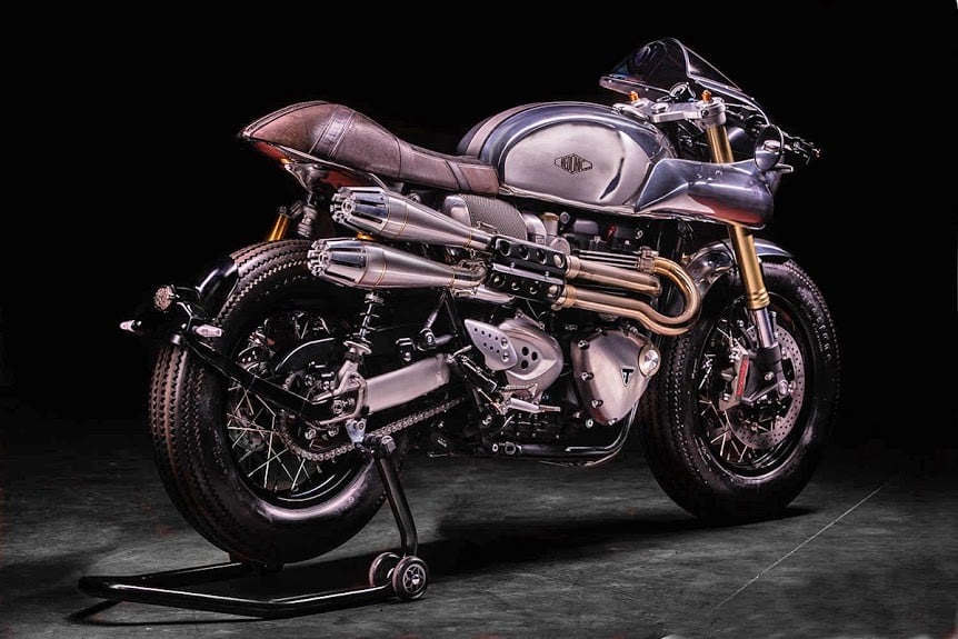 Seeking to make their new brand known, Hedonic workshop owner Serge Heitz and team have been creating custom bikes to show.  Their newest and what they feel is their best work yet coming out of their workshop just an hour West of Bordeaux, France, is the striking Hedonic Triumph Thruxton R.