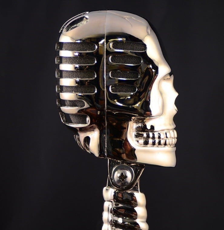 This USA-made, high quality dynamic microphone presents itself in the shape of that classic goth and metal music icon, the skull. It is not a toy, the Skull Microphone is suitable for both the studio and the stage, boasting a frequency response of 60 to 17,000 Hertz and an impedance rating of 150 Ohms with a Supercardioid polar pattern.