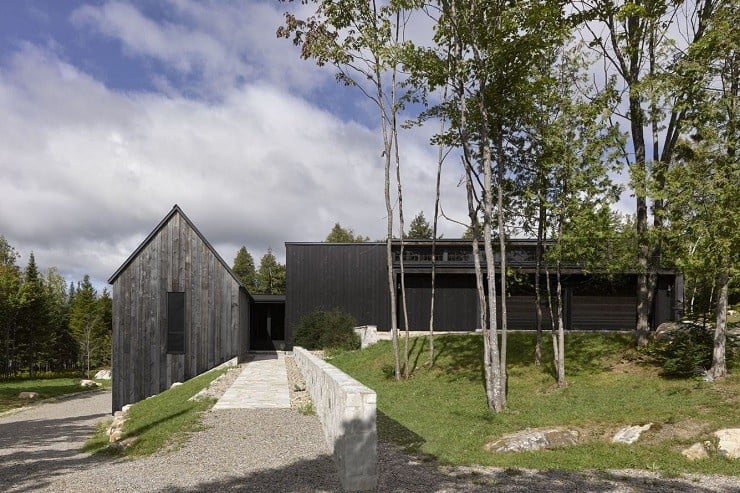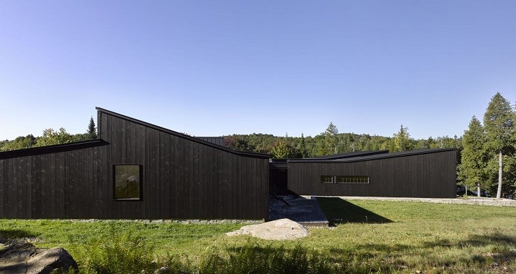 The impressive Residence MG2 created by Alain Carle Architecture sits boldly on its gently sloping lawn in Quebec, Canada. The structure is fragmented into four distinct pavilions which radiate from a central space which helps link the disparate buildings to the overall design.