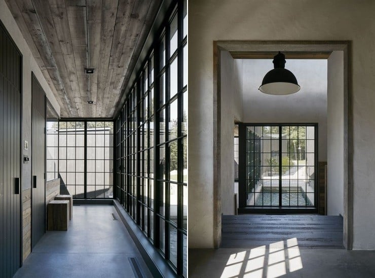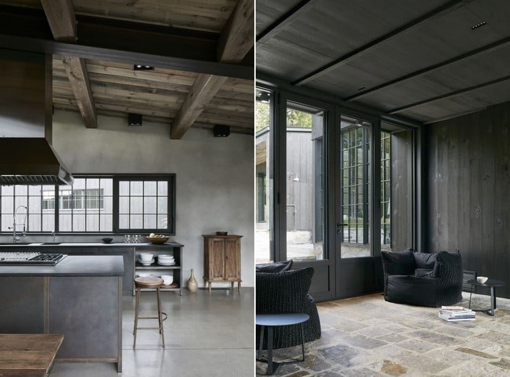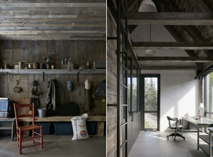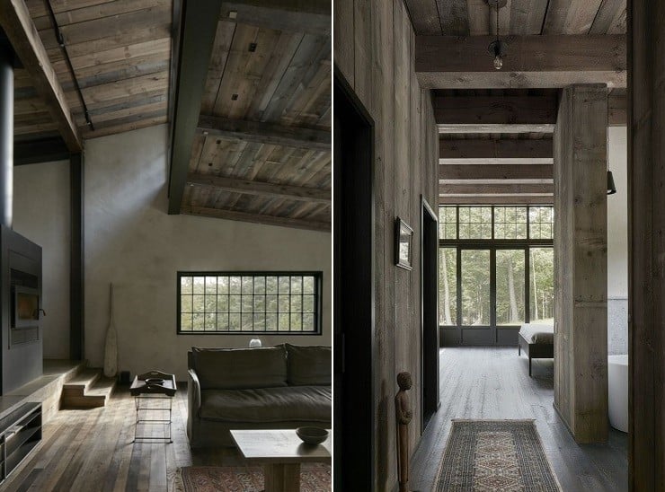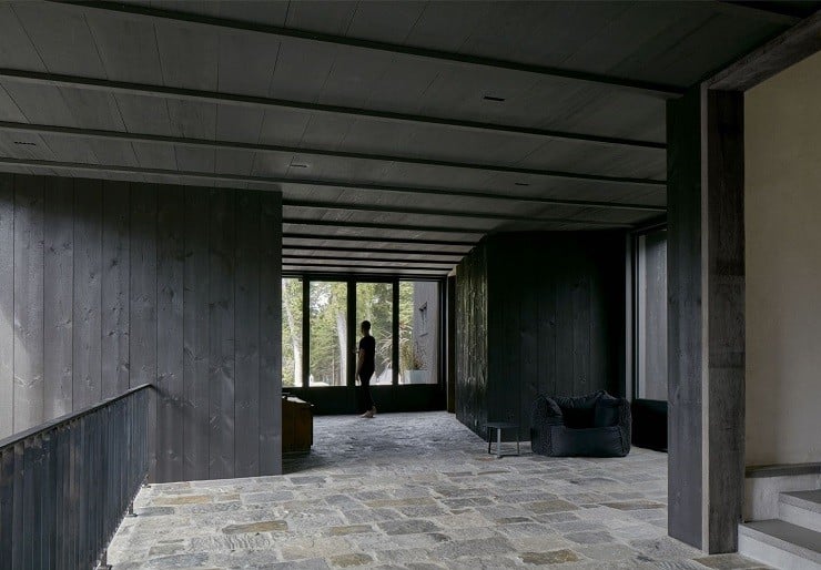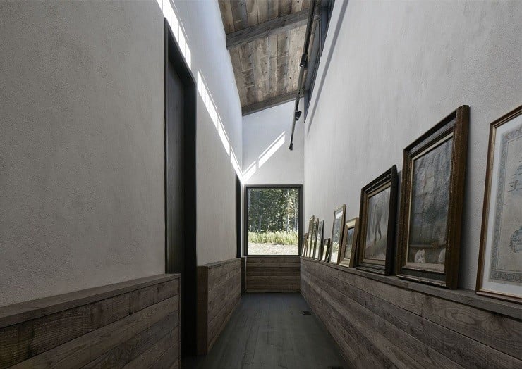 The other wings include the master bedroom and guest bedrooms. The volumes are interspersed with both wet and dry saunas and large showers although instead of an outdoor pool, the Residence MG2 features a small cold-water pond. The home gets its “lived-in” look from the interior and exterior wall cladding that was recycled from an old sawmill and the paving stones recovered from an abandoned quarry. A truly earth-rooted architecture that recreates our long-forgotten rural traditions.