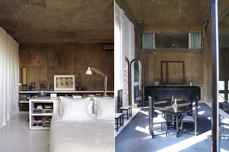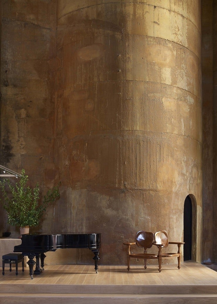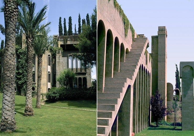 Ricardo Bofill’s Cement Factory was in a turn-of-the-century industrial complex and had fallen partially into ruins. The first task was to clear out the debris and rework the remainder. Utilizing some of those remaining elements – staircases to nowhere, huge empty spaces, old metal, and reinforced structures holding up nothing, he created a surreal look throughout the complex.