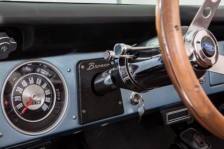 This is the ‘Coyote Bronco’ that Classic Ford Broncos has named ‘San Francisco’ ($Inquire). She originated as a 1974 donation vehicle. Restoration included the setting of a new Coyote 5.0 engine coupled with a five-speed manual transmission. The company demonstrated their love of the classic Ford Bronco look by maintaining the long wheelbase as well as the headlight bezels.