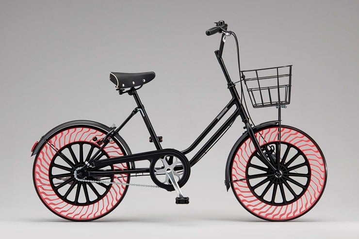With the Japanese tire manufacturer having quicker success for the Air Free in lighter vehicles, the flexible spoke design is being tested in a variety of sizes and purposes.  Bridgestone hopes to have a commercial version of this airless bicycle tire into production and released sometime in 2019.