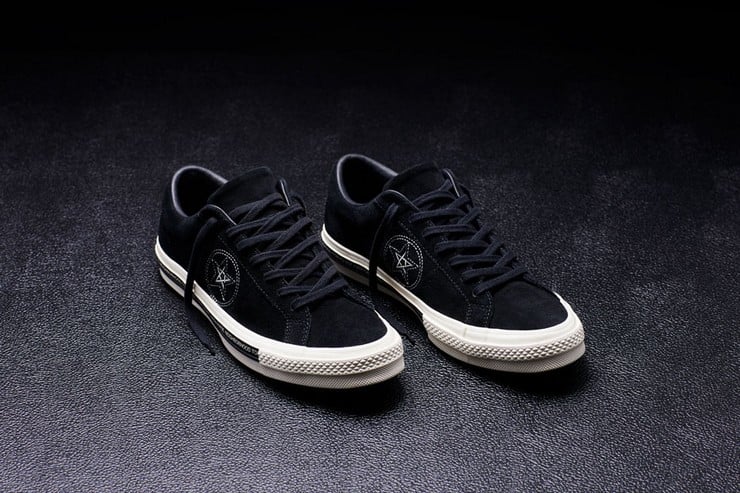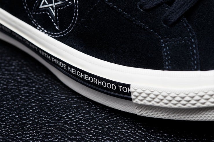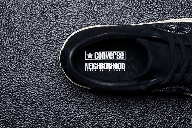 The All-Star ’70’s have canvas and leather uppers under a midfoot strap and special branded effects. The One Star ’74 features suede uppers with a leather lining to lend it strength. The standard star logo has also been updated to a slightly askance pentacle/pentagram motif. It, too, has special NEIGHBORHOOD branding markers to identify their design, including the ‘crafted with pride’ slogan. This is not the first time these two legends have paired up and with the looks of this new dynamic duo, may they do many more.