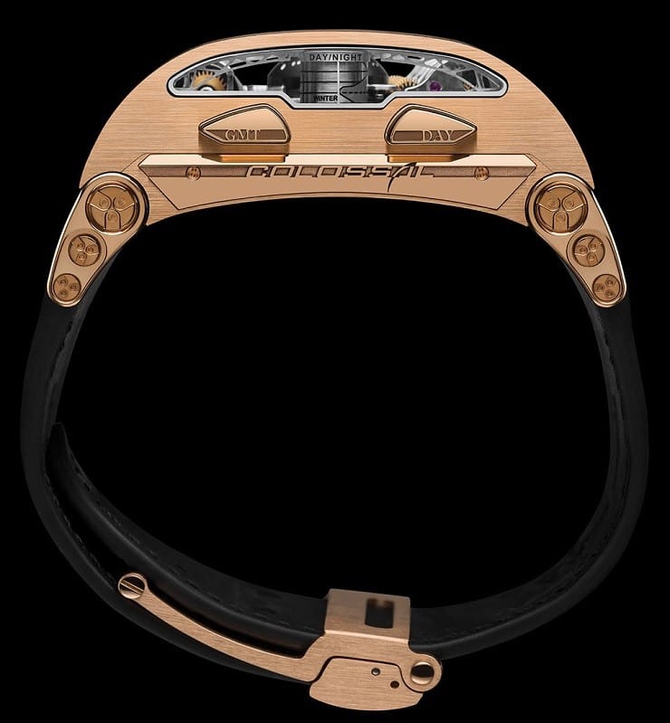 Powered by the in-house 186-jewel Hysek HW80 automatic movement with a twin-barreled winding system, the Colossal has a 42-hour power reserve and is water resistant to 100 feet (in case some madman decides to take this fancy piece for a swim).  There will only be eight of these Swiss-made magnificent timepieces created, so their uniqueness in the world is assured.   [via]