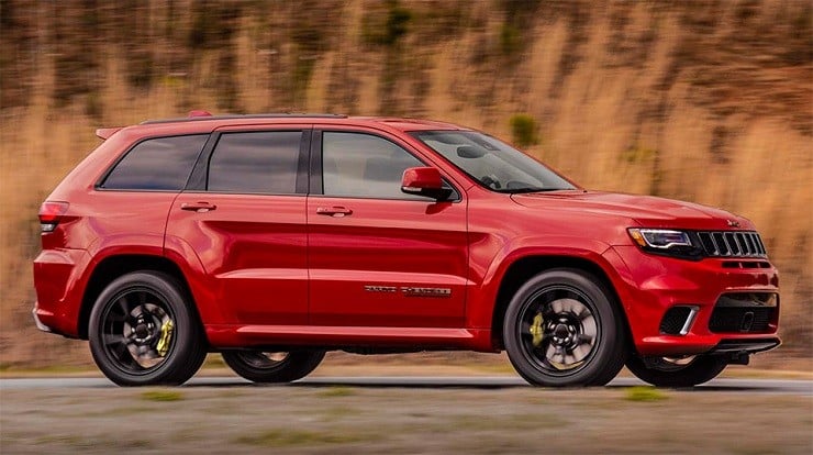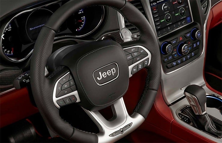 The brakes are also supersized: 15.75″ Brembo vented brakes that feature six-piston calipers on the front end (which make them the largest ever put on a Jeep.) The stopping power lets you go from 60 mph to a full stop in just 114 feet. Besides crazy speed, the Trackhawk’s more practical feature is the ability to tow a massive a 7,200 lbs.