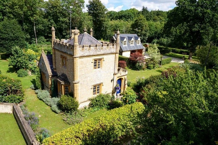 Called the smallest castle in England, Molly’s Lodge (~$690K), close to the village of Long Compton in Warwickshire, is up for sale. Originally built as the gatehouse to the Weston Park Estate, this stone Grade II listed castle with its crenelated roof was built by England’s famous architect Edward Blore in the 1830’s.