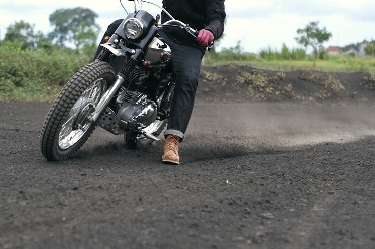 Thrive Motorcycle also changed the feel of the cockpit with a smaller headlight, after-market throttle, grips, mini-switches, and key ignition.  A skid plate and off-road foot pegs helped round off this transformation to prove once again that custom bikes ‘Thrive’ in Indonesia!   [via]