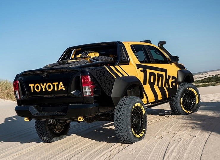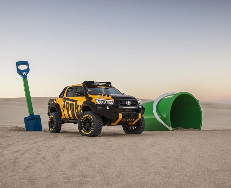 With its custom “Sun Fusion” yellow paint and powerful all-terrain performance, the HiLux Tonka Concept looks so much like a life-sized toy you can almost expect to see a giant child delighting in making it smash its way over the Australian outback. See it ripping the sand in the video below.