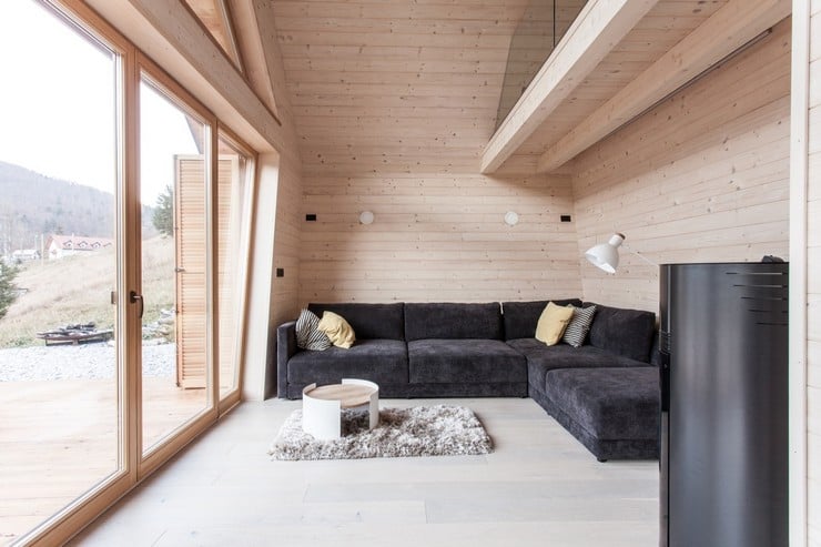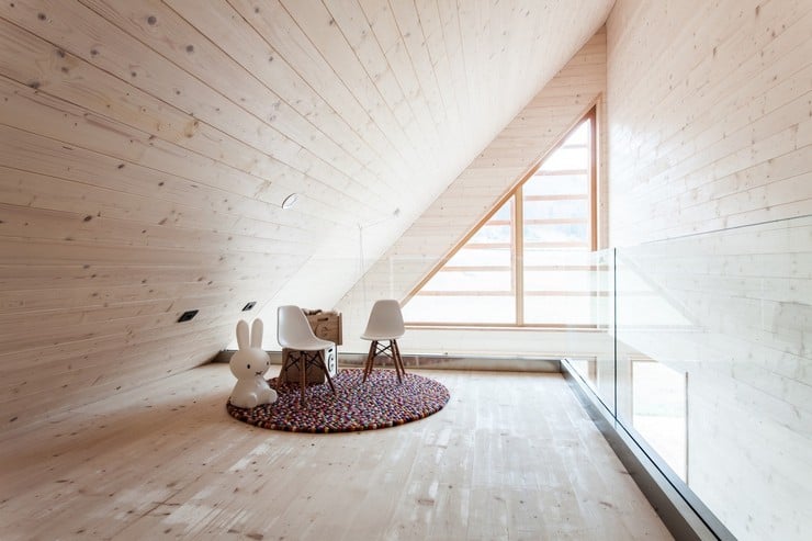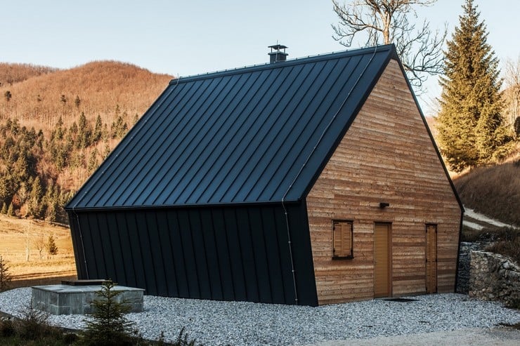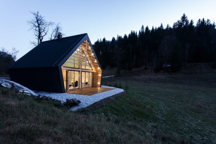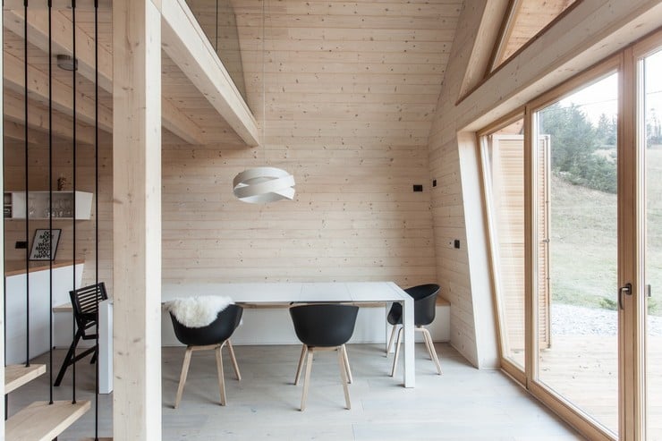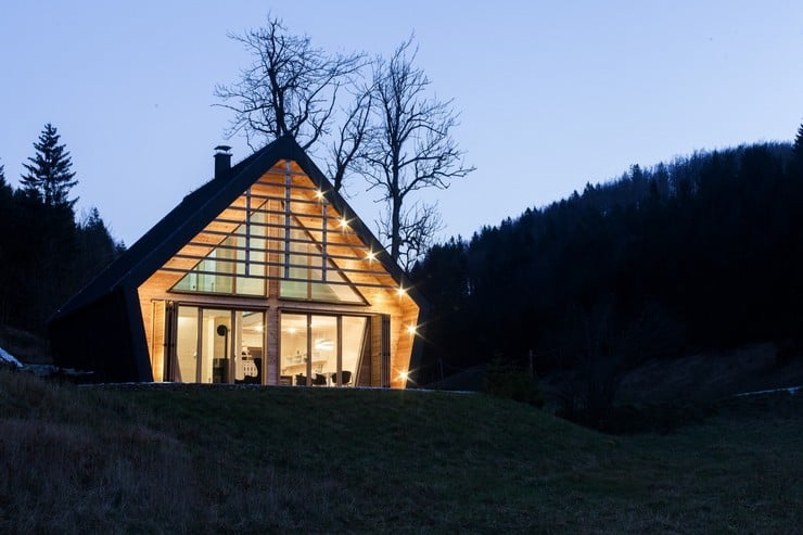 Kanji Dol, Slovenia, is the location of the award-winning Wooden House, designed and realized by the architectural firm studio PIKAPLUS. Blended naturally into a large forest clearing, this residential structure utilizes renewable material resources to create a rugged shelter from the adverse weather patterns that Slovenia can experience. In addition, the long, steep angle of the roof prevents snow from weighing it down.