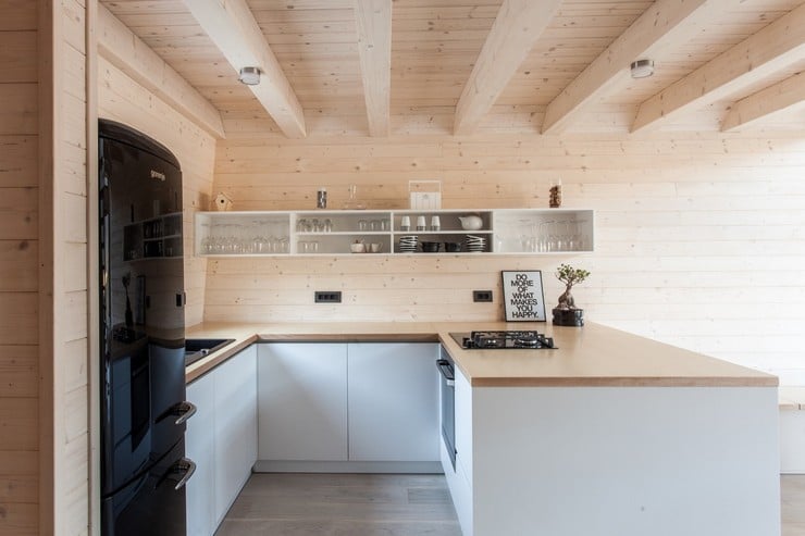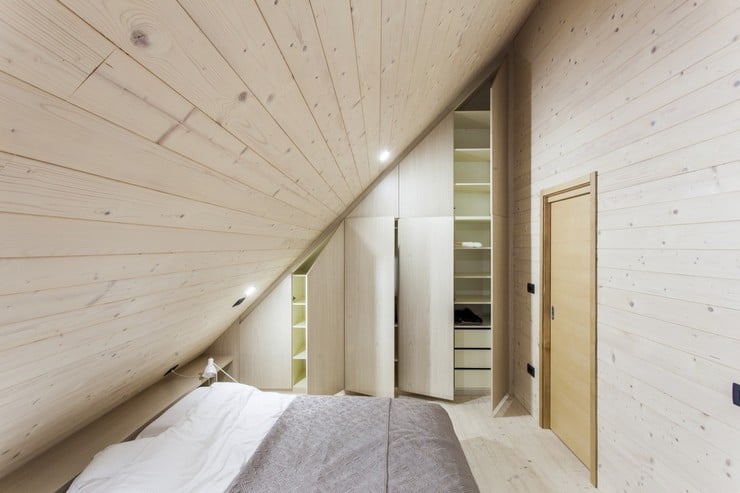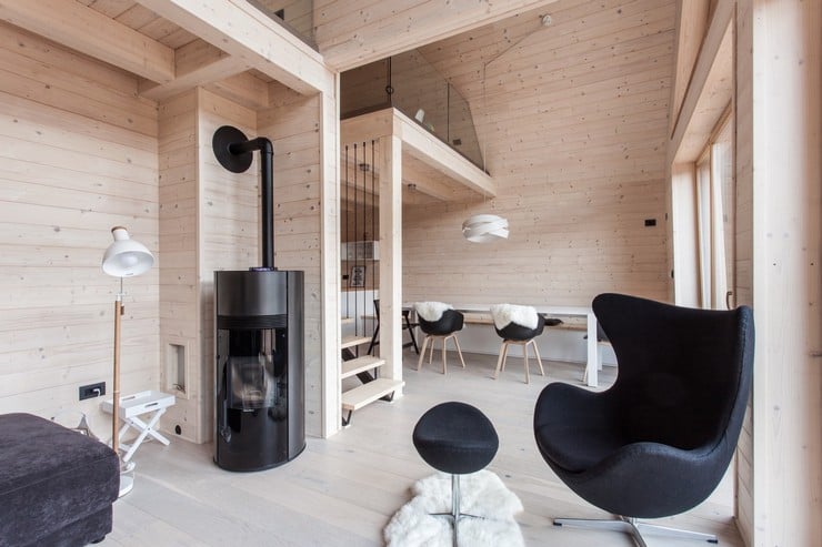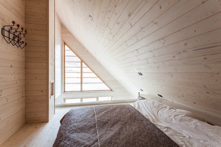 Dominant open spaces give the Wooden House a much greater visual appeal and airiness while finding hidden nooks to fit in all the aspects of life that make a house a cozy home. [via]