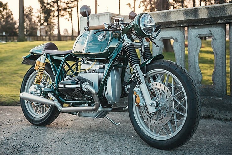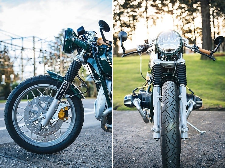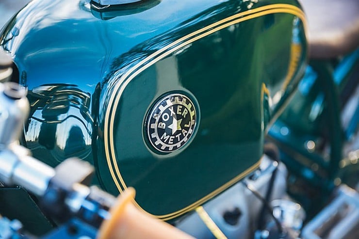 Chris and Rebecca Canterbury of Chico, California’s Boxer Metal Motorcycle Shop love a challenge to test their skills. One client wanted a cafe racer that could double as a world-class touring bike, carry luggage, and fit the rider who is rather short. After some deliberation a ‘Weiss & Grun’ BMW 1982 R100T was selected for the job.
