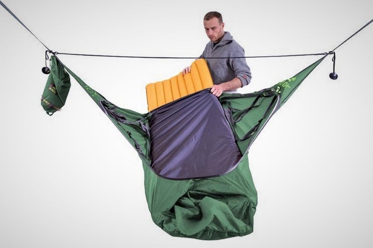 The Draumr has an integrated mosquito net which can be removed if desired. It is made of highly durable ripstop nylon and comes in a variety of colors including Woody Green, Rusty Red, Nordic Blue, or Golden Yellow. With this much comfort outside, it may be hard to have to go back home.