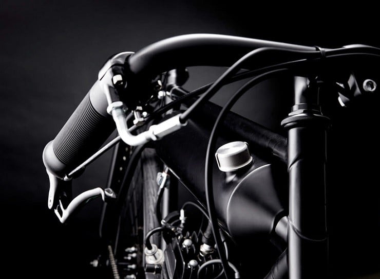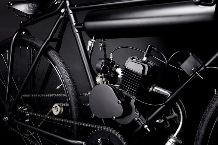 Powered by a small engine- only a 50cc single cylinder capable of producing just 2 hp – this nimble Pigeon still tops out at around 44 mph. Modern, efficient front disk brakes contribute to the stopping power, while a Brooks seat that hangs over the back tire in a boardtrack style adds comfort and finesse. If the bike draws enough interest, Wilson is contemplating producing more in a limited volume under the Dicer Bikes brand. Needless to say, we think it’s a go!