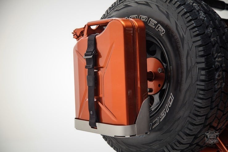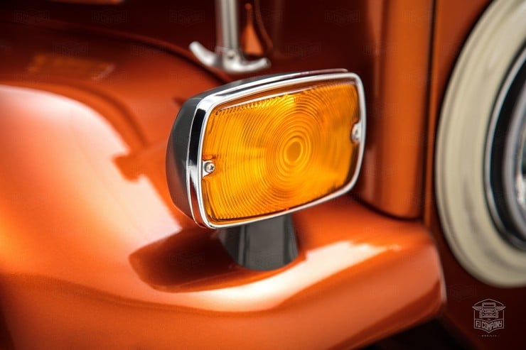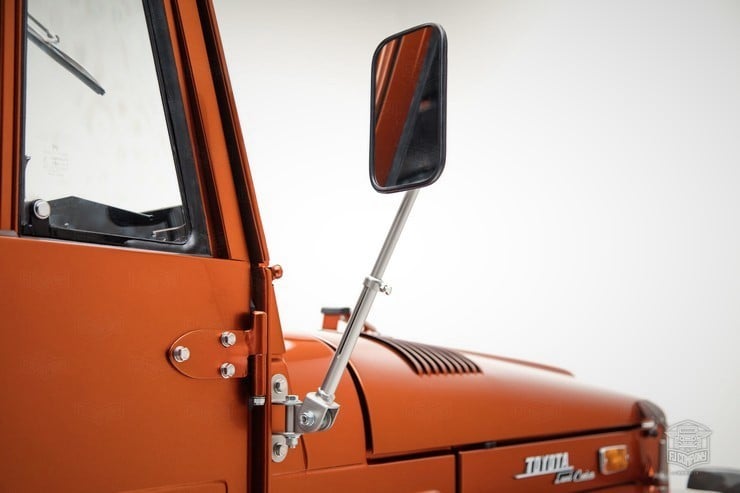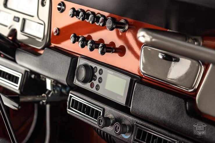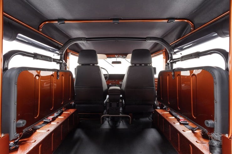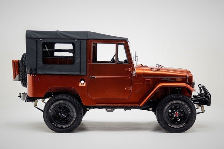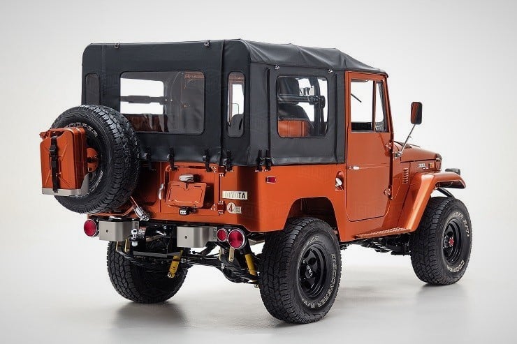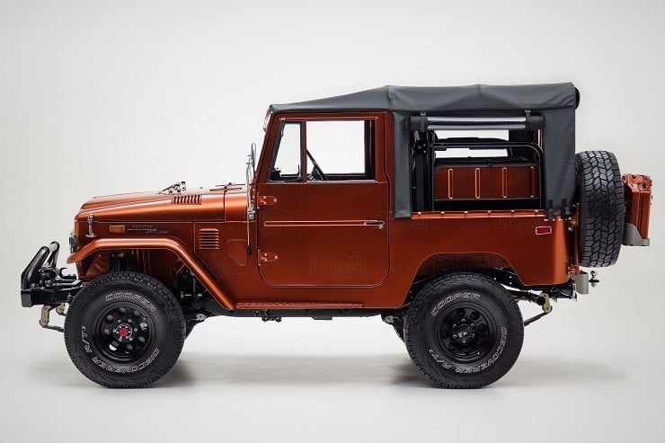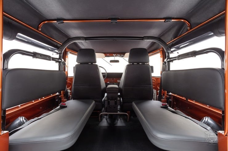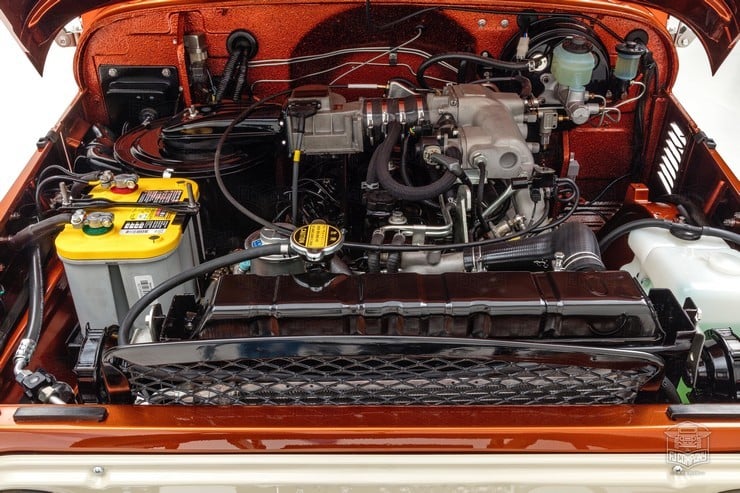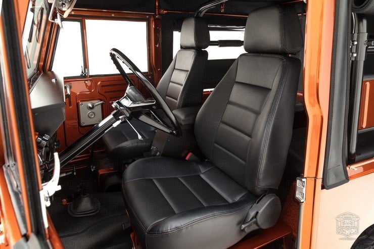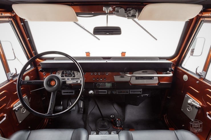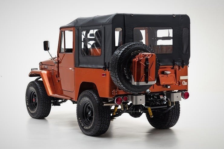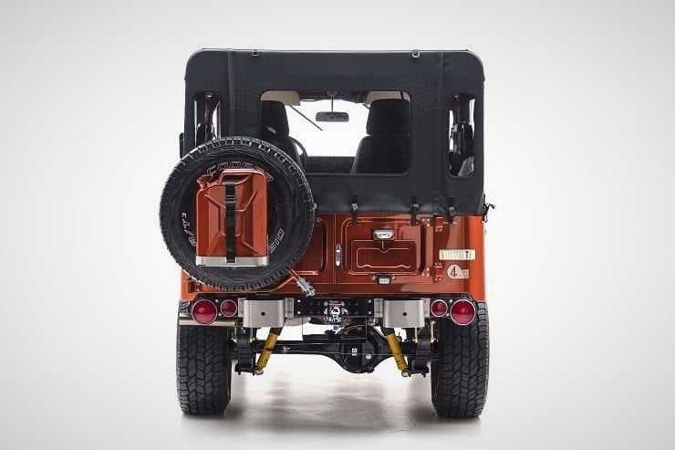 Inside, the passengers are treated to heated Corbeau sports seats and two matching fold-down rear seats. A marine-grade audio system was installed as well as a durable U-POL Raptor bed liner so the inside stays sweet however far afield they go in this FJ49. All it needs for the perfect Tonka toy truck image is a giant hand reaching down to play with it.