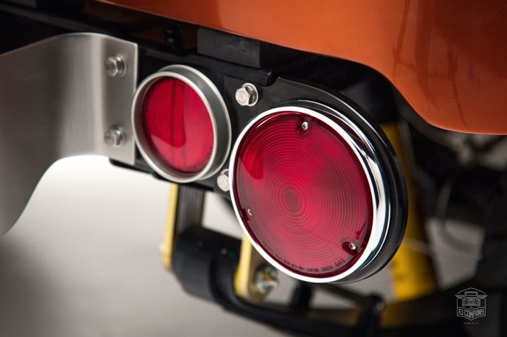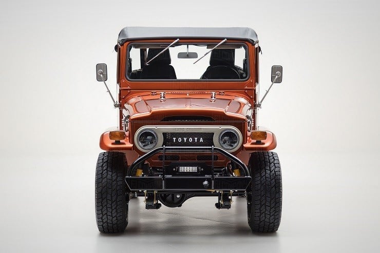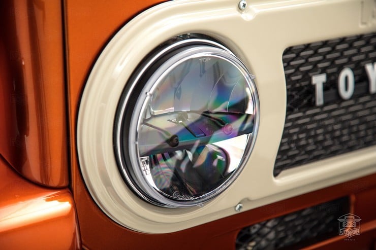 It took reworking classic features across various model years to create the FJ49 Tonka Truck ($NA) and was detailed with such bits as the hot-rod metallic orange paintwork, A/T3 Cooper tires, Mickey Thompson wheels, and a custom front bumper. Since the donor vehicle came to FJ sans original engine, the truck was completely rebuilt & matched to a manual 5-speed transmission.