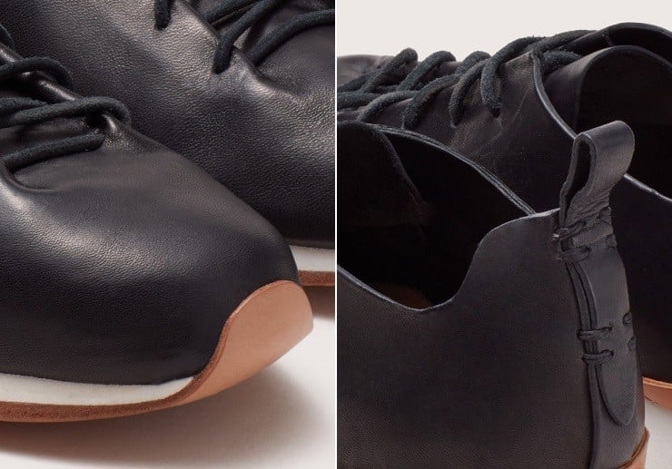 The new Feit Runner ($540) has a seamless one-piece upper made of vegetable-tanned half cordovan leather.  The tongue of the shoe is a unified part of the upper and creates a folded ‘paperbag’ effect when laced up.  Since the leather is natural and unfinished, it allows the new Runner to breathe and diminishes the possibility that they will retain foot odor.