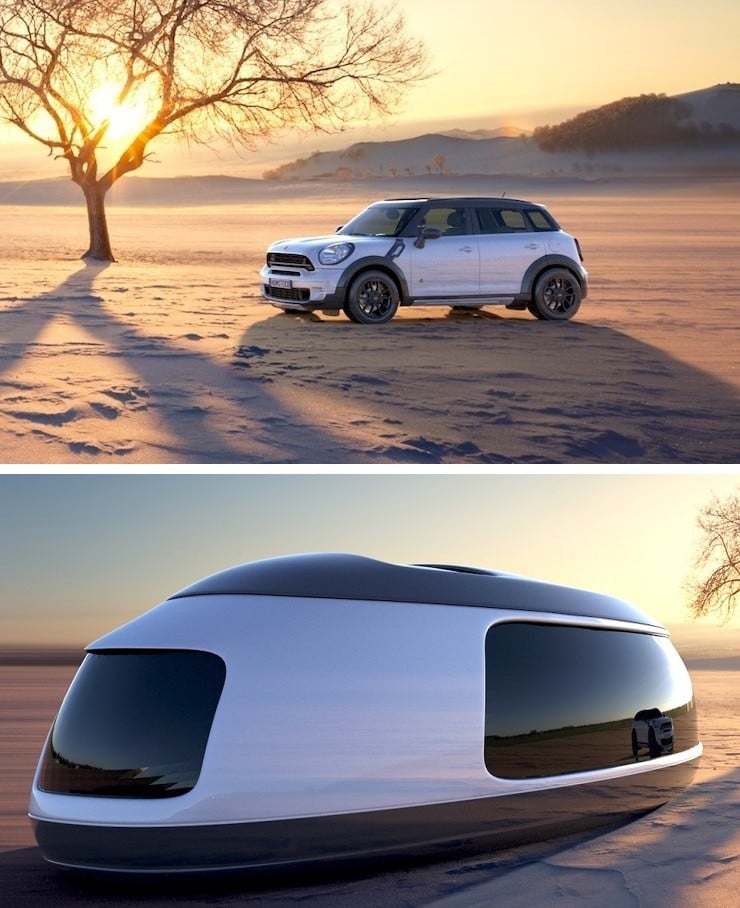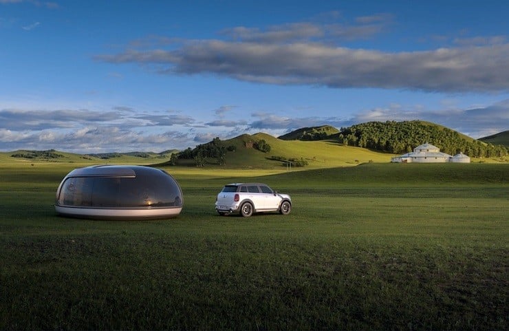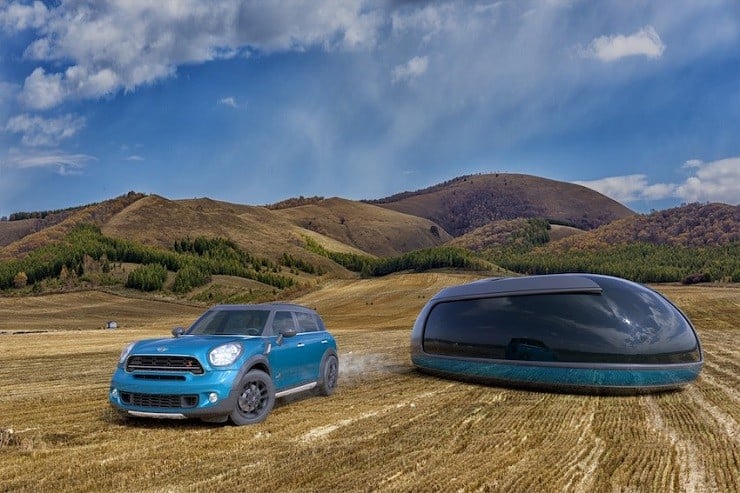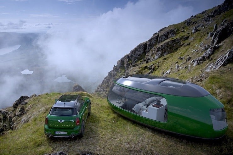 From the fertile mind of Fabian Mazzola of Bitlens Studio in collaboration with advertising giant Anomaly comes an award-winning futuristic self-sustaining camping pod that takes its shape and inspiration from the iconic look of the Mini Cooper F60 Countyman automobile.