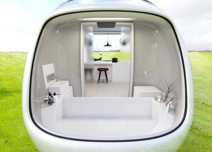 The pod is built of durable weather-resistant materials so it can survive unscathed in a wide range of extreme climates while keeping its occupants safe and dry. The idea was to create all the amenities of home for the camping experience. The only drawback is that the concept does not demonstrate how to get the pod into or out of its destinations, but we’re sure a trailer would do the job just fine. [via]