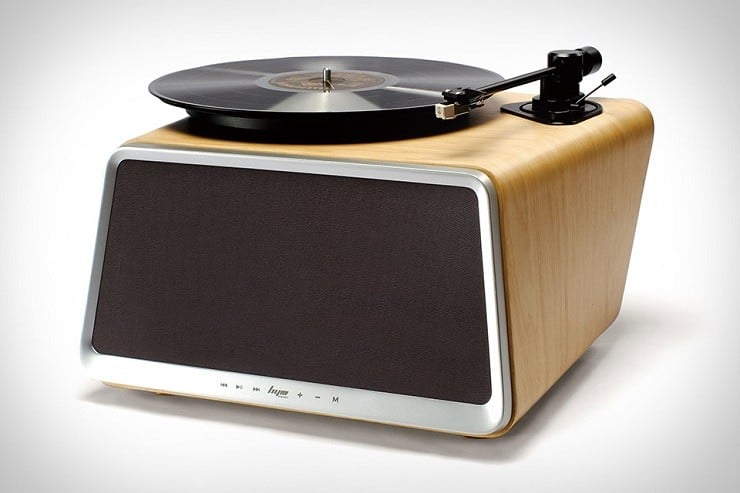 Japanese designers HYM Originals have designed an all-in-one system they feel is superior to any other of this type machine.  The Seed Turntable ($410) sits atop the speaker housing and uses a patented shock absorber system to isolate the turntable and nullify the vibrations even from the speakers at volume.  The Seed has a 70-watt output through two 1″ tweeters, two 4″ subwoofers, and the Technica Hi-Fi phonograph cartridge.