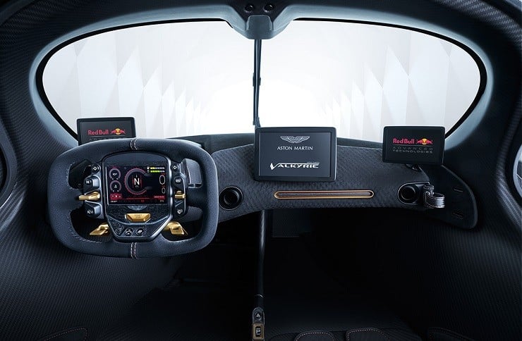 The Valkyrie is a hybrid, pairing a 6.5-liter V12 engine to an electric powertrain supplied by Rimac.  This will be producing over 1,000 hp controlled through a unique new 7-speed paddle-shift transmission.  Alcon and Surface Transforms have developed a braking system using lightweight calipers and carbon discs to rein in that much power.