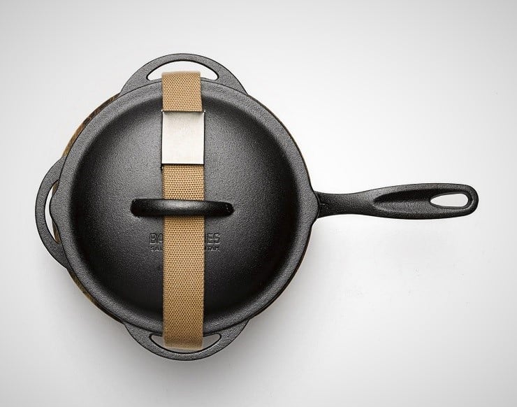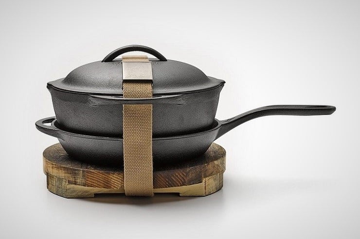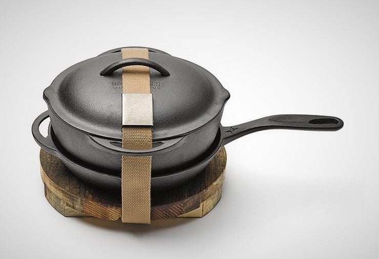 Cast iron cooking imbues any food with a distinctive old-world flavor.  It is durable and reliable whether over an open fire or a modern range.  Barebones Living out of Salt Lake City, Utah understands the traditions of cast iron and have assembled a Kit of pieces that will give you a strong traditional cooking experience.  Each kit comes with a cast iron skillet, crock pot, matching interchangeable lid, and a wooden serving trivet, as well as a stainless steel cleaning mesh and tube of organic, locally sourced seasoning oil.