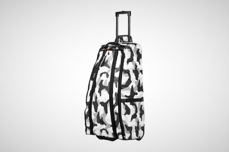 Freeskier Jon Olsson really likes camo, enough so that not only is his house, his video camera, and his Lamborghini done up in white/gray/black camo style; so is the new line of four limited edition travel bags his company has just released.