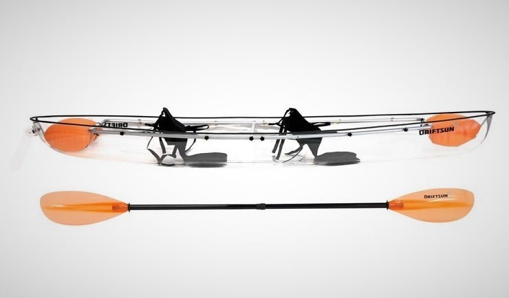 With its open top, the Driftsun Transparent Kayak ($1,600) is more like a kayak/canoe hybrid but with an intriguing difference. This 11-foot long watercraft is constructed with a quarter-inch thick crystal clear scratch-resistant 100% UV Resistant Polycarbonate Hull. By eliminating the natural surface glare from the water, you can easily view the aquatic life below your craft.