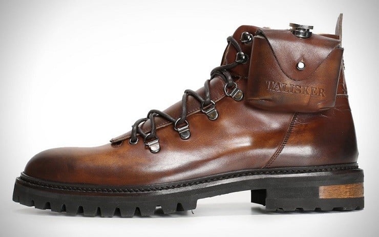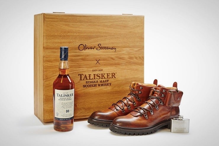 One of the finest combinations of old world adventure from the British Isles has just been combined by luxury British menswear designer Oliver Sweeney and Isle of Skye’s own single malt Scotch, Talisker Whiskey. They have paired a distinctive hiking boot with a distinctive liquor, a 700ml bottle of the brand’s signature 10-Year-old Scotch, a branded sterling silver etched hipflask that fits a special pocket in the boot, and a traditional compass all in a solid oak presentation box.
