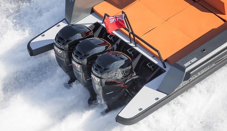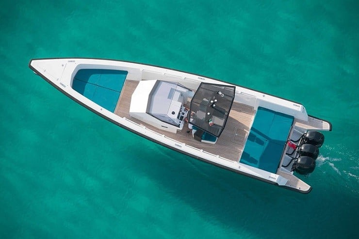 Monaco-based Wally Yachts has just introduced their new day cruiser boat they made with racing in mind. The ‘Tender X’ ($Inquire) is powered by three 6-cylinder Mercury 400 Verado ‘RCD2′ outboard racing engines. With a combined horsepower of 1,200, the Tender X can reach an impressive top speed of right at 69 mph.