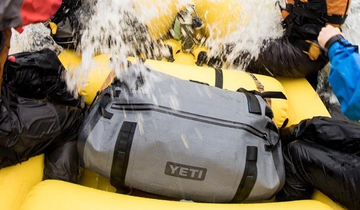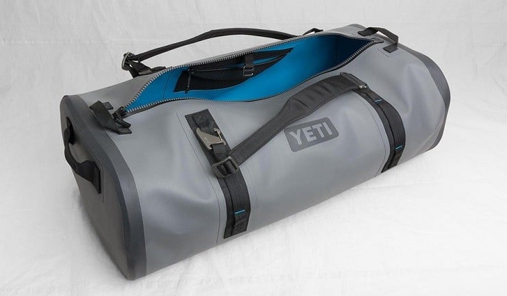 The outer shell is their patented ThickSkin puncture and tear resistant high-density TPU laminated nylon and is complimented with waterproof Hydrolock zippers so that the Yeti Panga Duffel can be submerged in water and stay safe and dry inside.