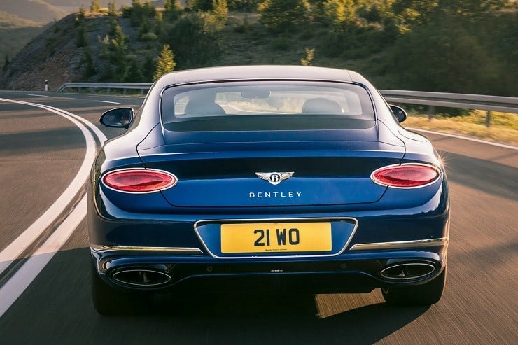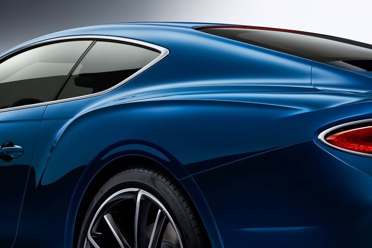 The new Bentley Continental GT has a lowered engine hood and nose along with a wheelbase 5.3″ longer. The front fender vent has been moved to above the side skirts. Te entire rear has been reconfigured with LED tail lights and the exhaust pipes sharing a similar elliptical shape. The trunk is wider and deeper and the bumper’s license plate recess is low to the ground. It is also their first production car with the body made entirely of Super Formed aluminum for a savings of 176 lbs.
