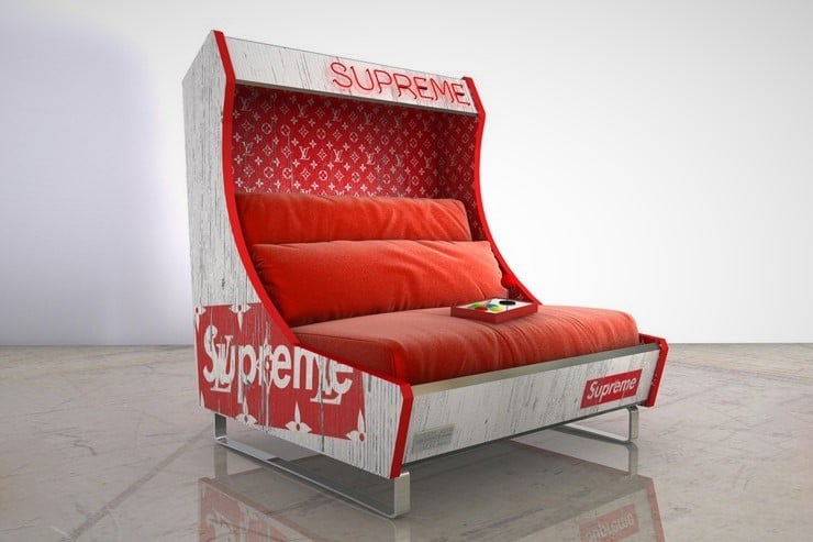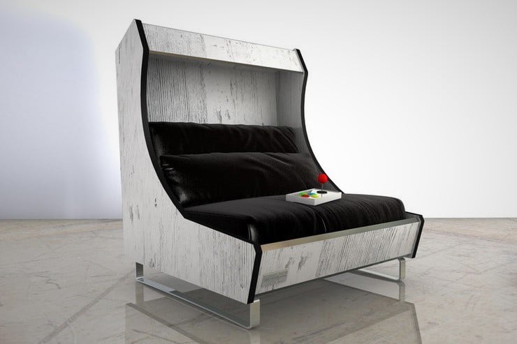 Inspired by the fighting genre of arcade video games from the 1990’s, the design house of Harow, in Paris, France, has created an ultra-comfortable sofa. The standard size of the Harow Arcade Sofa  ($Inquire) is 49” x 43” x 59” although custom sizes and configurations are available on request.  Each of these sofas are entirely hand made out of recycled wood, steel, and velvet.