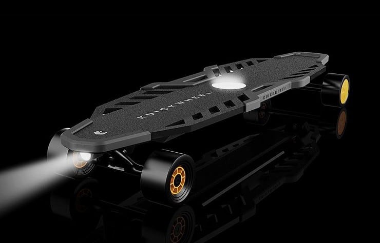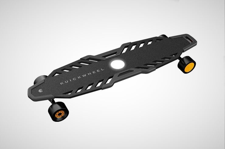 The Kuickwheel Serpent-W is a longboard with a hallowed Aluminum alloy deck capable of supporting 265 lbs. – making it one of the strongest boards available. It is 40.74″ long, has a 25 mph top speed, and a 9.3-mile range per charge to its 36V 4.4Ah 1,800W rear-mounted brushless motor. Both boards are expected to arrive this October.