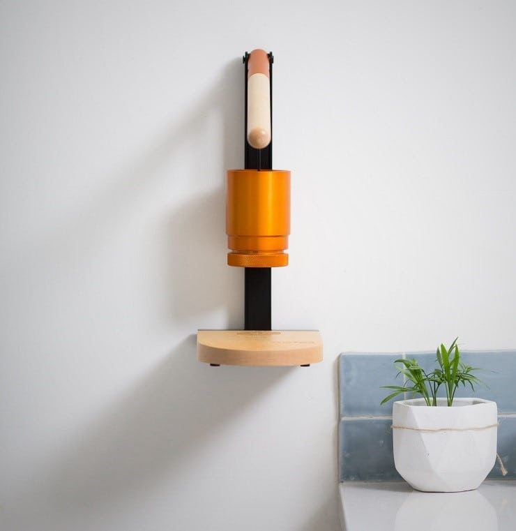 The Newton Espresso Press has no internal parts or that can go bad, it is simple to use, stylish in repose, and can even be wall mounted if desired.  It is slated for an upcoming Kickstarter campaign in October and can be pre-ordered for a discount from their website.