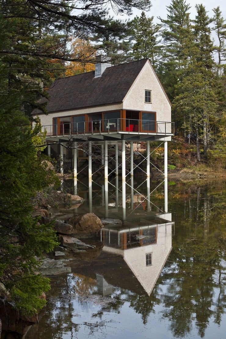 Sitting on the Atlantic coast outside of Mount Desert, Maine, is the award-winning ‘Pond House’ designed by Elliott + Elliott Architecture. The construction is actually a three unit compound joined by wooden decking.