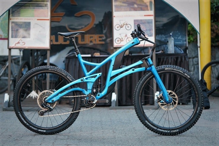 Just introduced at the Whistler, British Columbia Crankworx festival was the innovative SCW 1 Linkage Mountain Bike ($TBA) by the Alberta-based Structure Cycleworks. A glaring deviation from the norm can be seen on this carbon-fiber intense bike by the replacement of a traditional suspension fork with a linkage-style suspension.