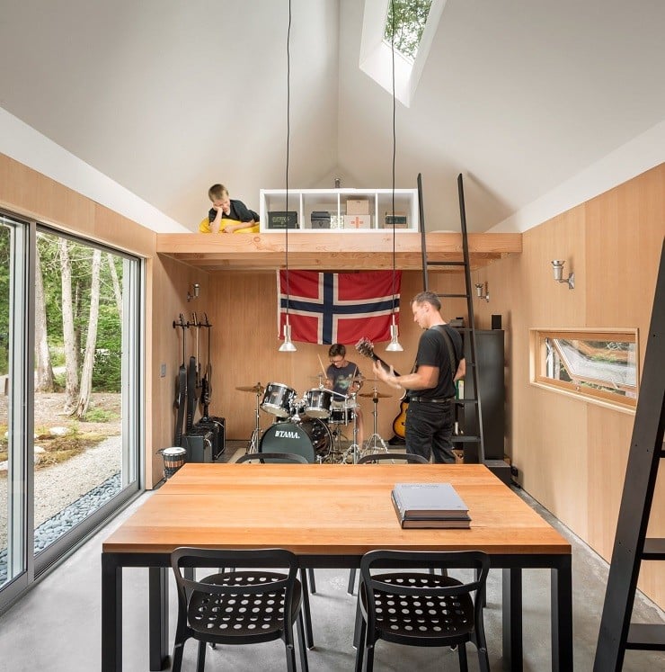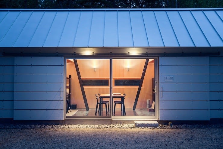 The 30×40 Design Workshop on Mount Desert Island on the midcoast of Maine got its name from the simple floor dimensions of their signature work.  This multi-function structure, a modern take on the workshop or barn, morphs for each season providing both wide door apertures with the sliding double door on the long front, narrower doors on the end for storage, and strategically placed windows that provide ventilation and passive lighting.