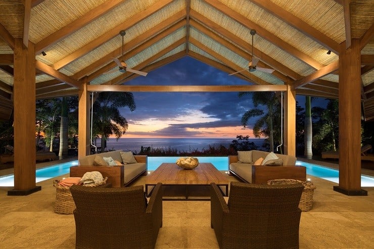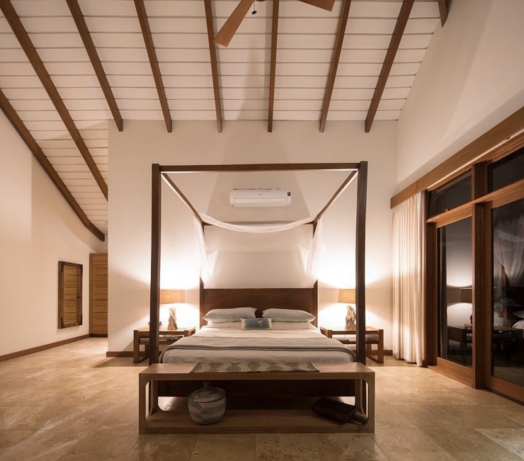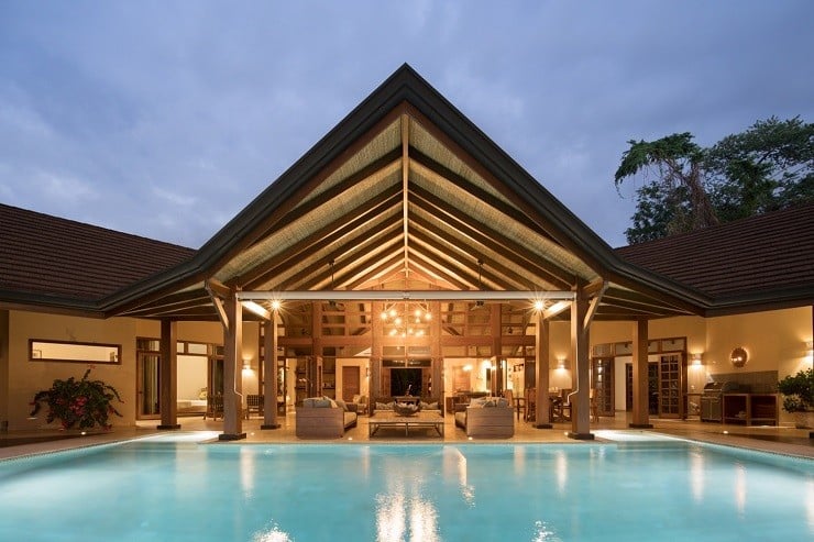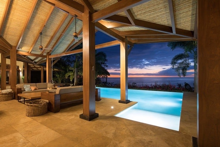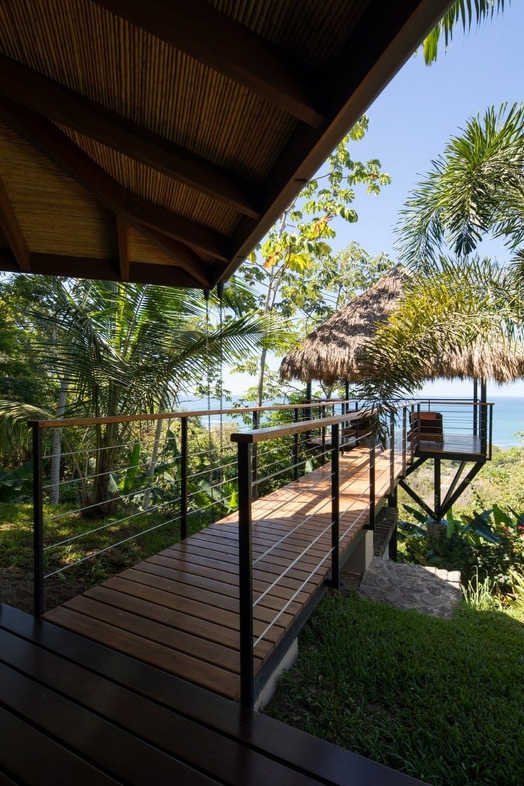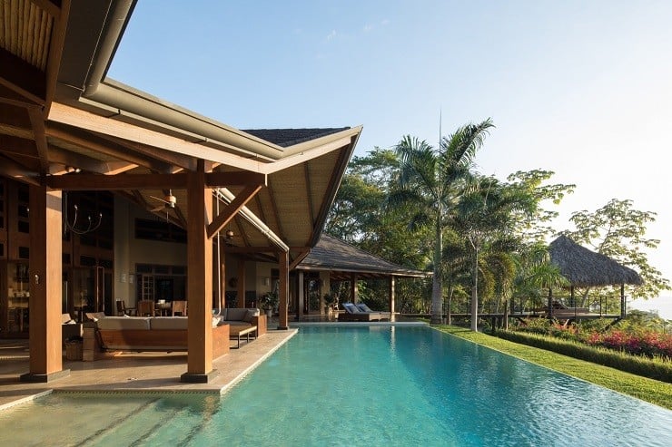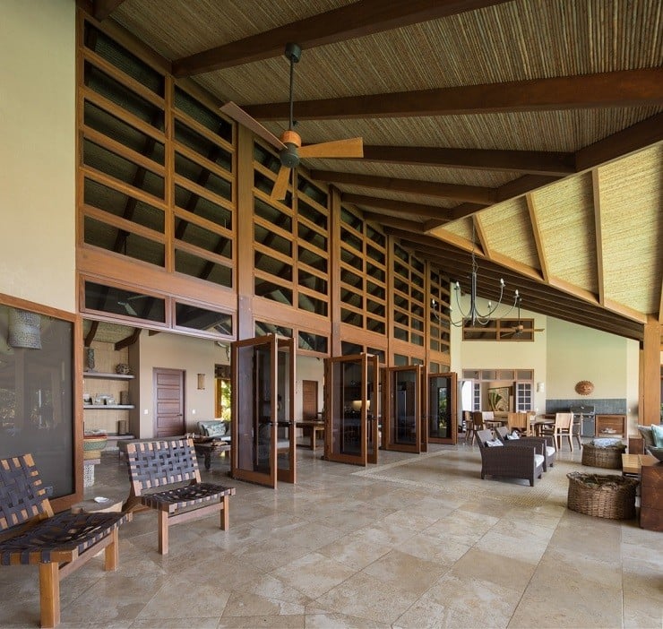 A fine example of this environmentally-friendly style can be seen in the Brisas del Cabo House in Malpais, Costa Rica. With the impetus being on a home that gave the appearance of living outside, the ceilings are high to provide both cross-breeze ventilation and natural air cooling against the hot climate. The curve of the long house is focused inward to the large swimming pool in the back and the lush vegetation beyond. Light wood and locally sourced materials help soften and blend the interior spaces through covered lounges and direct deck access to the water element tying the spacious and relaxing design together.