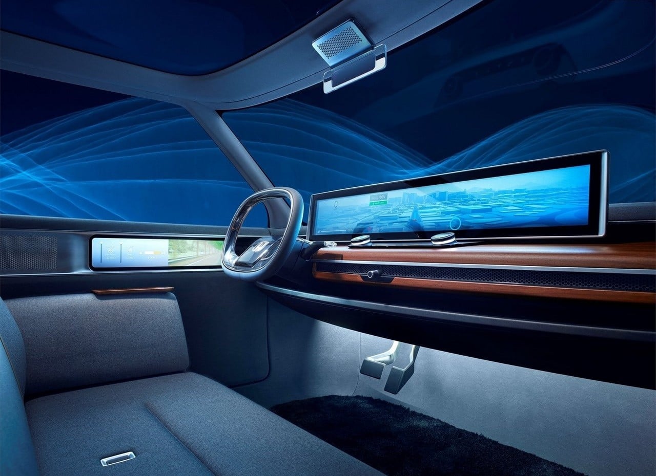 Even the outside shows high-tech urban influence with the grill between the headlights being another screen that allows you to display messages to other drivers. The four-passenger vehicle seats 2 x 2 across bench seats and has Rolls-Royce inspired rear-hinged doors. Expect production and sales to start in Europe as early as next year.