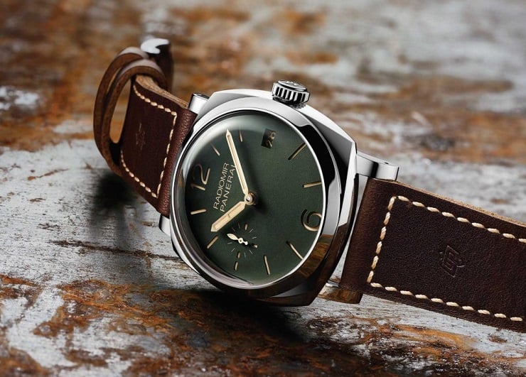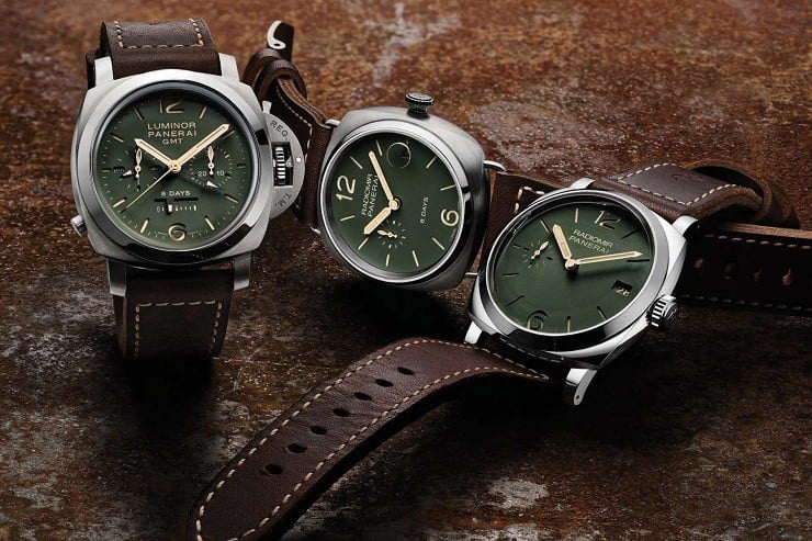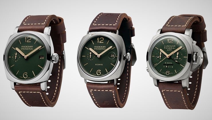 Panerai has just issued a handsome collection of three of their standard watches featuring matte forest green dials complemented with gold colored hands and indices.