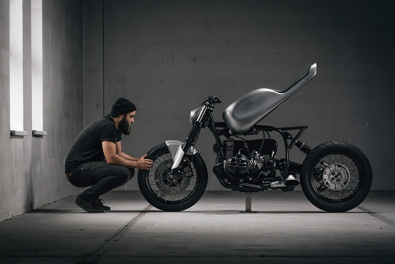 Paul Brauchart and Philipp Rabl of Austria’s Vagabund Moto delight in creating minimalist cycle designs that still retain the full functionality desired by the bikes’ owners. It is not a task undertaken lightly but they are up to the challenge. As an example, this 1993 BMW R100R has transformed under their hands into a sleeker, lighter machine with more power and features.