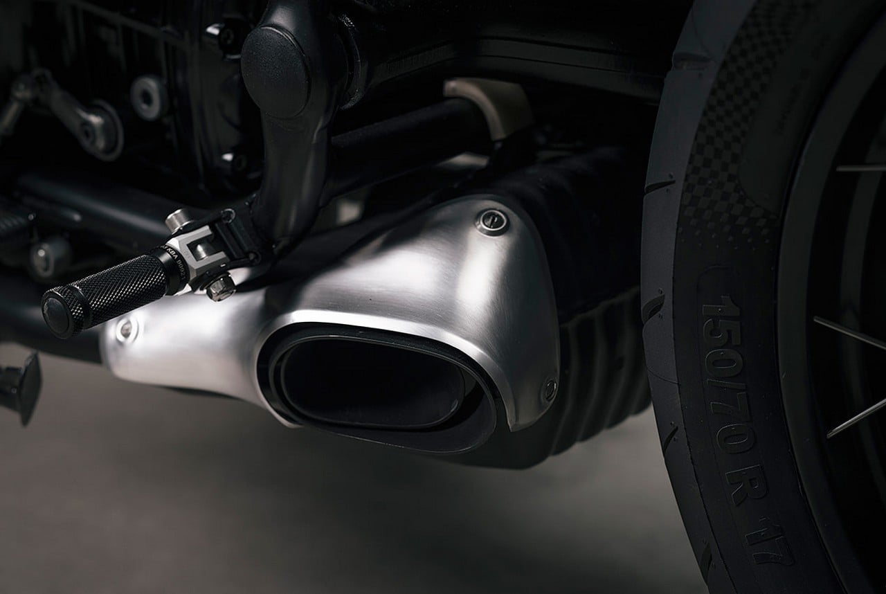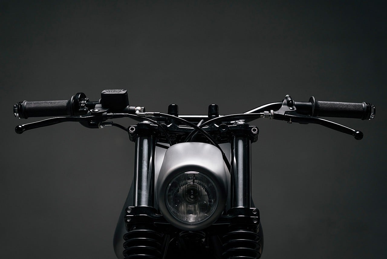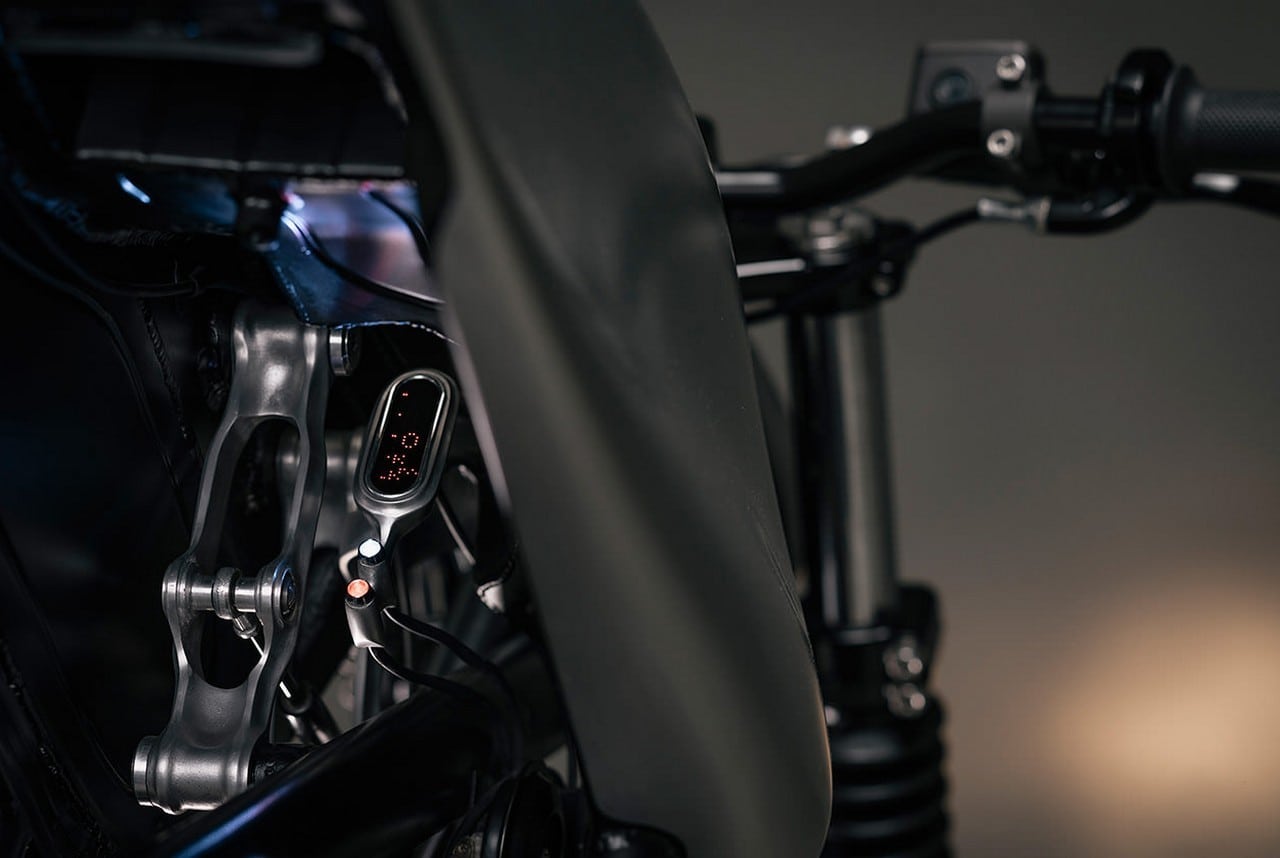 The original BMW battery was replaced by a smaller lithium-ion one and the airbox and ignition coil modified to match. They trimmed nearly 3″ off the front forks, replaced the original tank and seat with a hand-shaped monocoque unit, and added a new front mudguard and headlight nacelle, both made from aluminum. Another cool feature is the tail end of the body which lifts up via a gas shock-powered hinge, to reveal a custom-built subframe that houses a with a handsewn leather valet tray holding a stormproof lighter, a Leatherman multi-tool and matching card wallet. Finished up in ceramic-coated black, this stunning bike looks ready to rule the night.