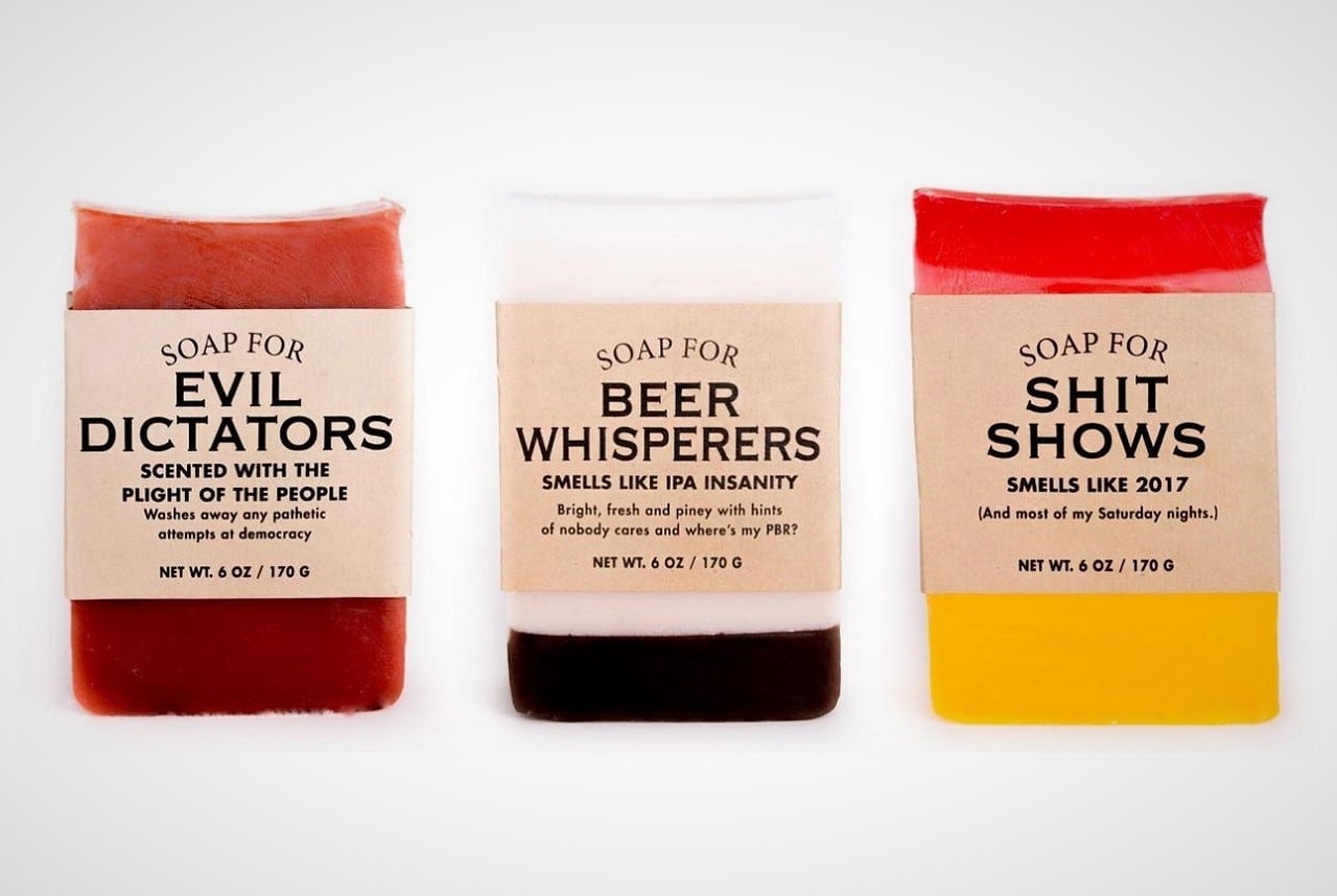 What they want you to do is really read the labels. They are funny, they are sarcastic, they are flippant and snarky and can sum up your life in a well-written sentence or two. They are constantly adding new phrases to the lineup of Whiskey River Sarcastic Soaps so that whoever you are, be it a teacher, artist, businessperson, introvert, or just a regular guy, Sarcastic Soap has a label to put your situation in perspective with a wry wit and sharp-tongued humor. [via] Buy From Whiskey River $8.95