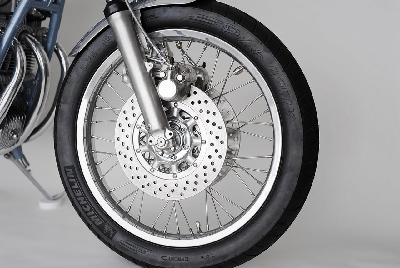 He had a 1976 CB500 engine laying around for months when he got the idea to build a bike around it. Intending to make the engine the primary focal point, the rest of the bike, from the frame to the tank and the seat needed to be minimized. The solid areas, like the asymmetrical tank, seat, and side panel offer the skinny frame a scantily clad look, hence the name.