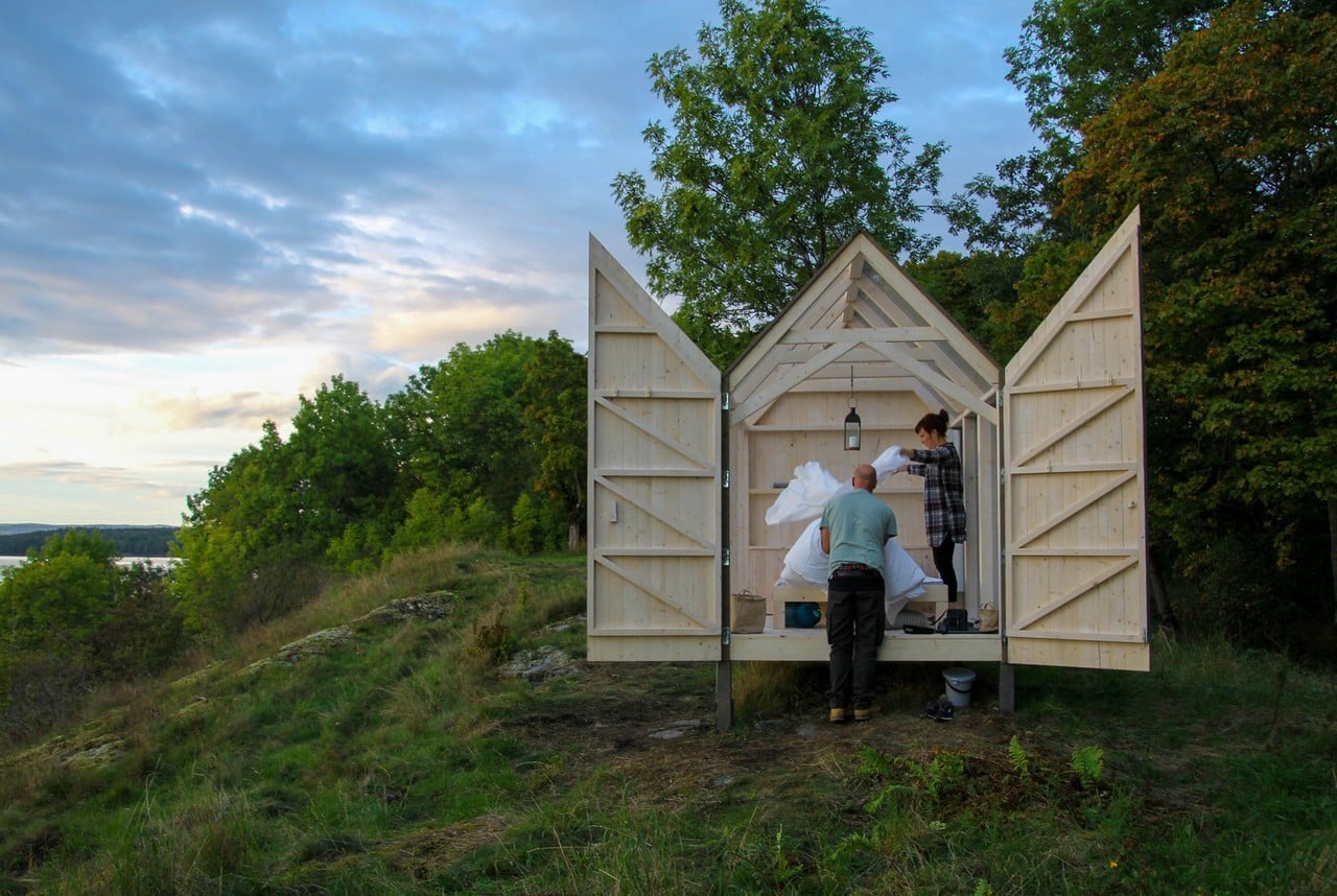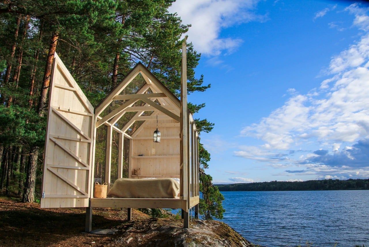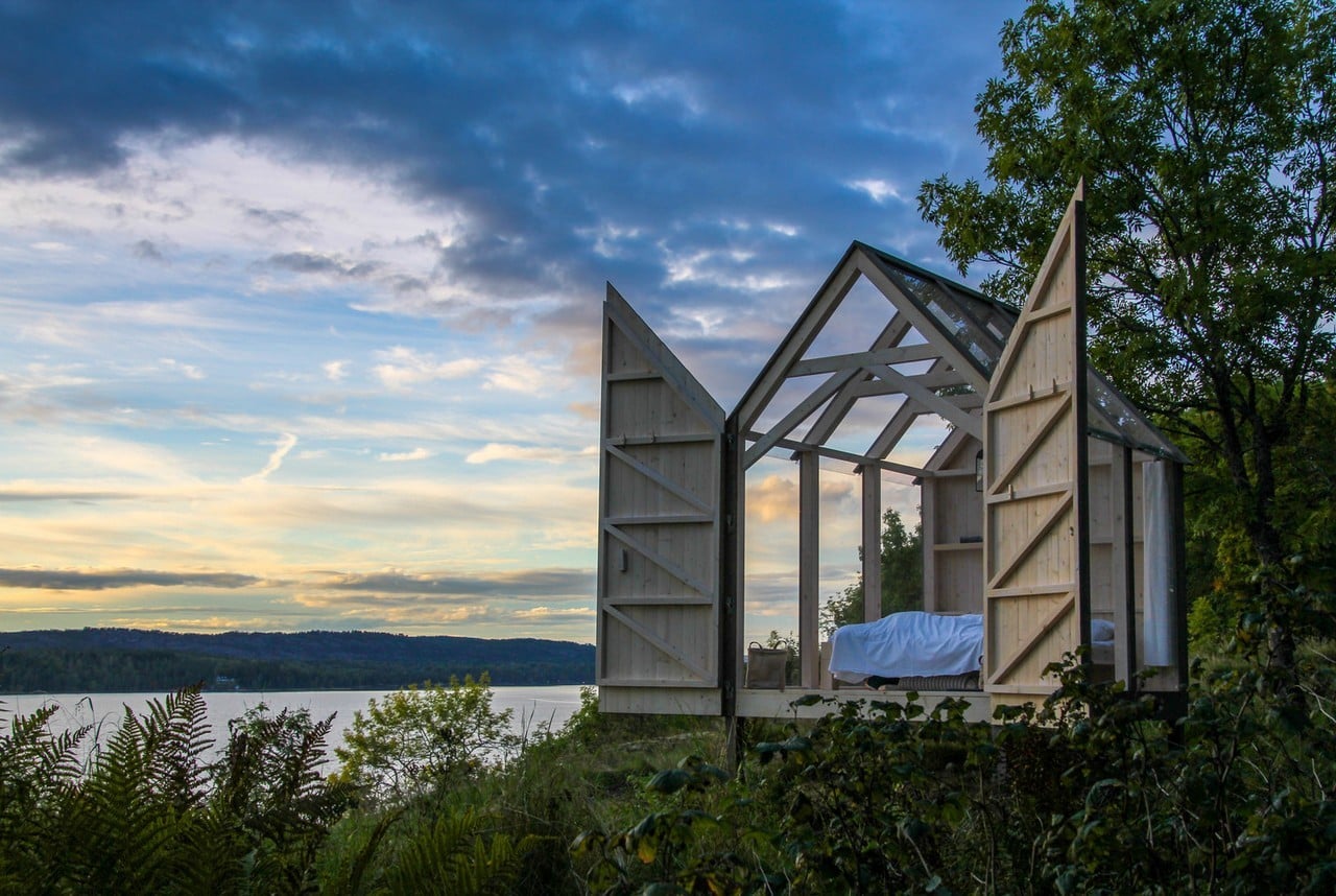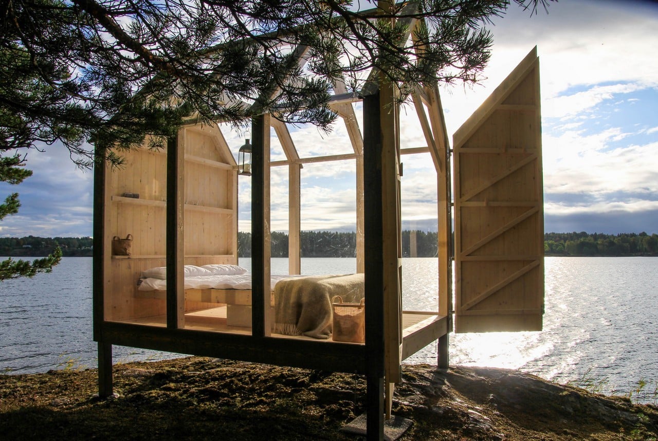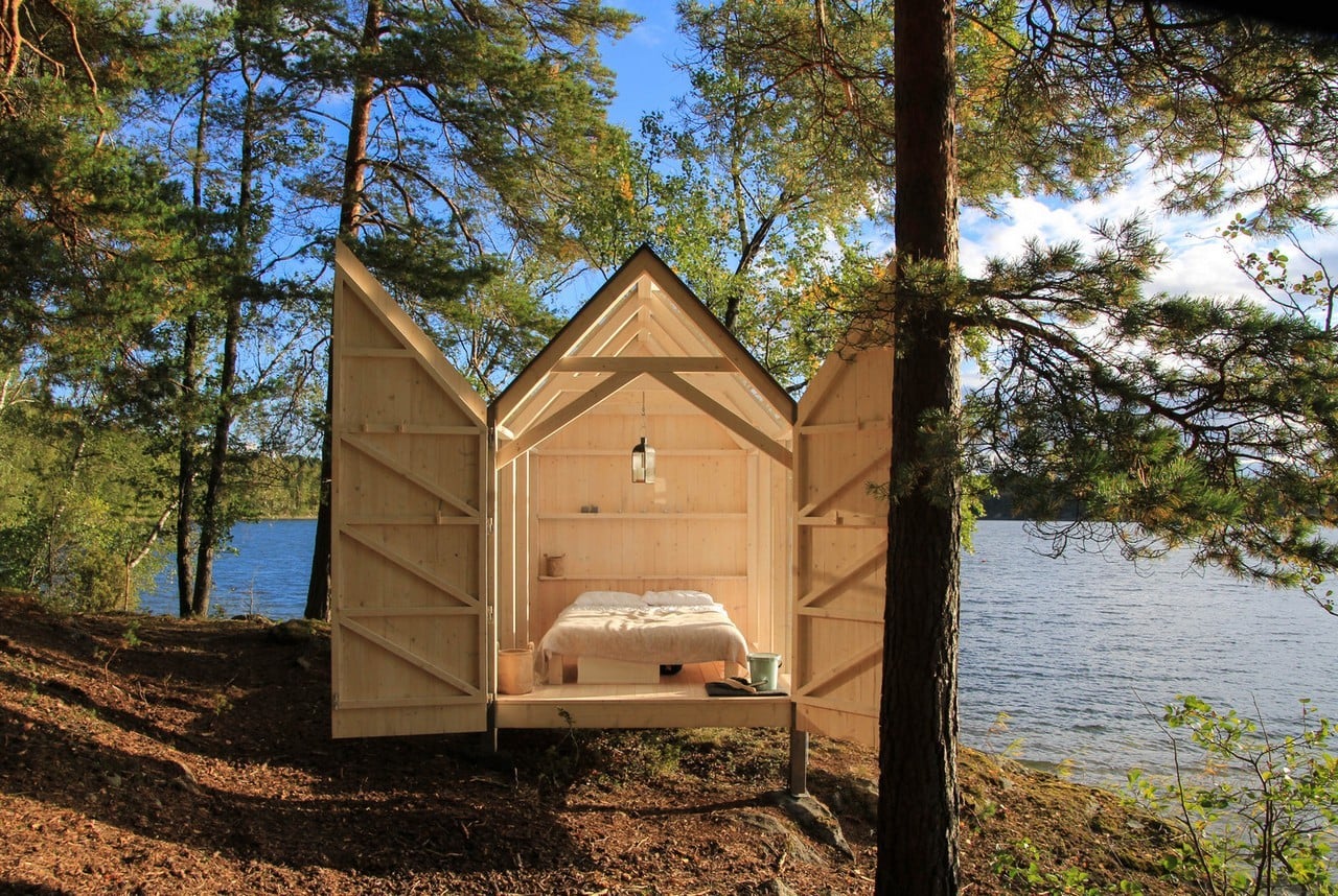 Henriksholm (Sweden) is a privately owned island on Lake Ånimmen where the Berger family specializes in housing vacationers since they are close to Lake Vänern and the Sörknatten Nature Preserve. The area offers a wide range of outdoor activities and relaxation opportunities. Architect Jeanna Berger, the daughter of the island’s owners, designed five 72-Hour Cabins strategically located on the lakeside as a unique place to experience nature in comfort.