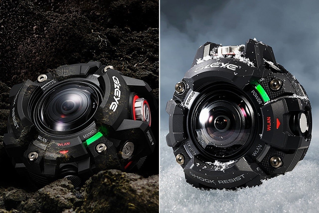 Casio’s rugged G-Shock watches are so popular and well-recognized that they have used the same design and durability to produce their new smart camera, the G’z EYE! This action camera is built tough – able to survive a 13′ (4m) fall or 164′ (50m) of water. It has an IPX8 dust rating and can operate in cold temps as low as 14 degrees Fahrenheit (-10C).