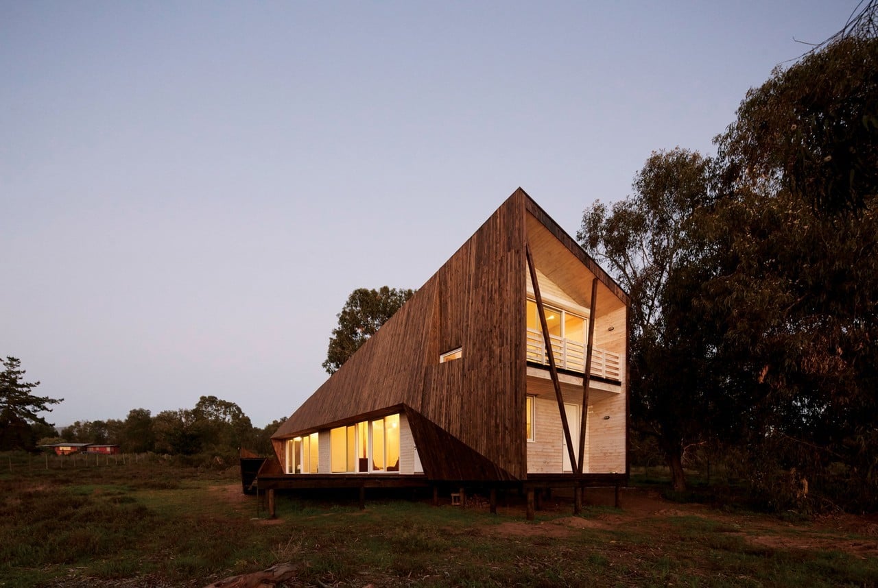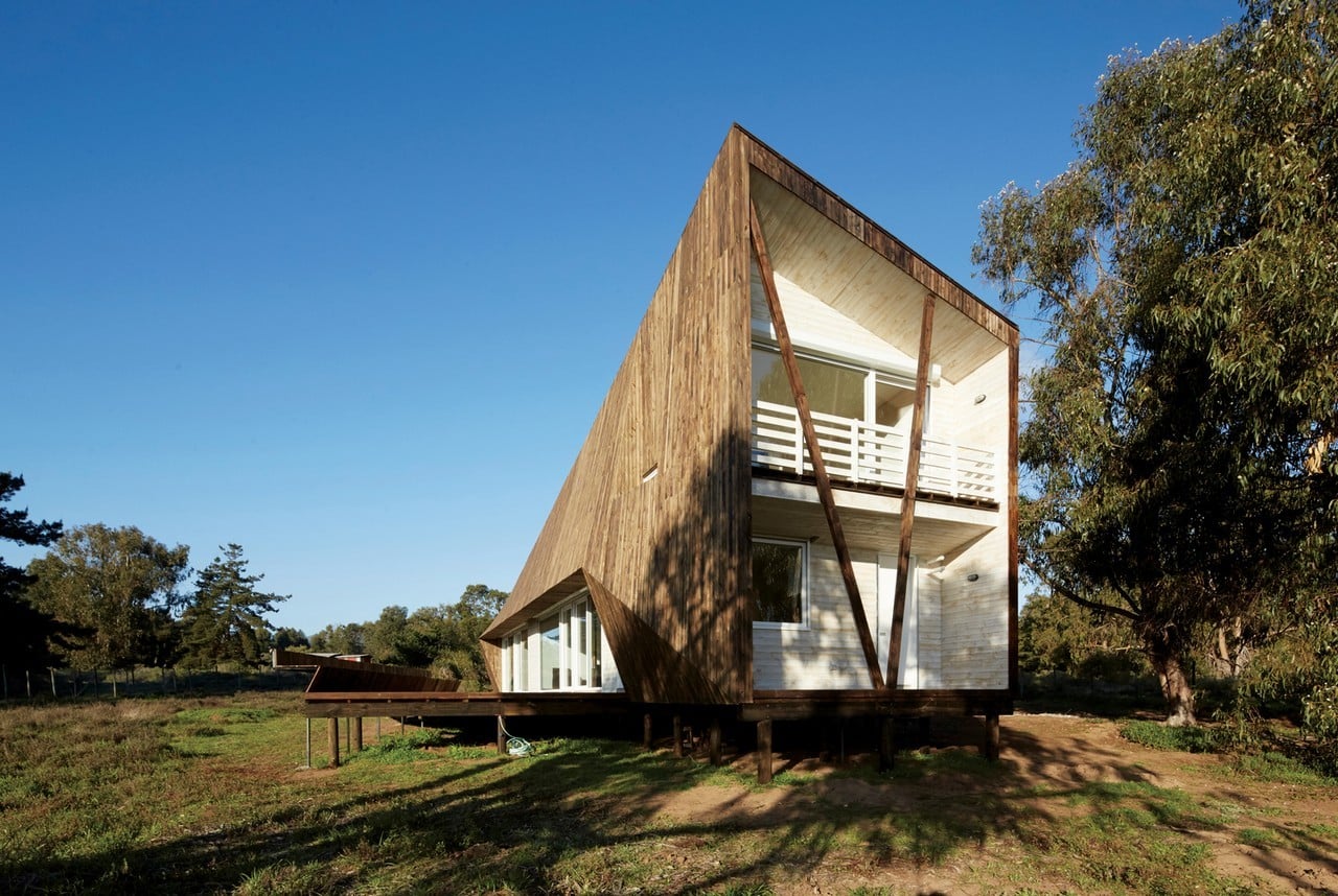 Pedro González of Chile’s Verónica Arcos Architects got to play with geometry for the surfaces and shapes of the Dos Pieles House (Two Skins House), a coastal beach home just over 100 miles North of Santiago. The primary purpose was to provide the best natural thermal insulation while still incorporating expansive views of the Pacific Ocean.