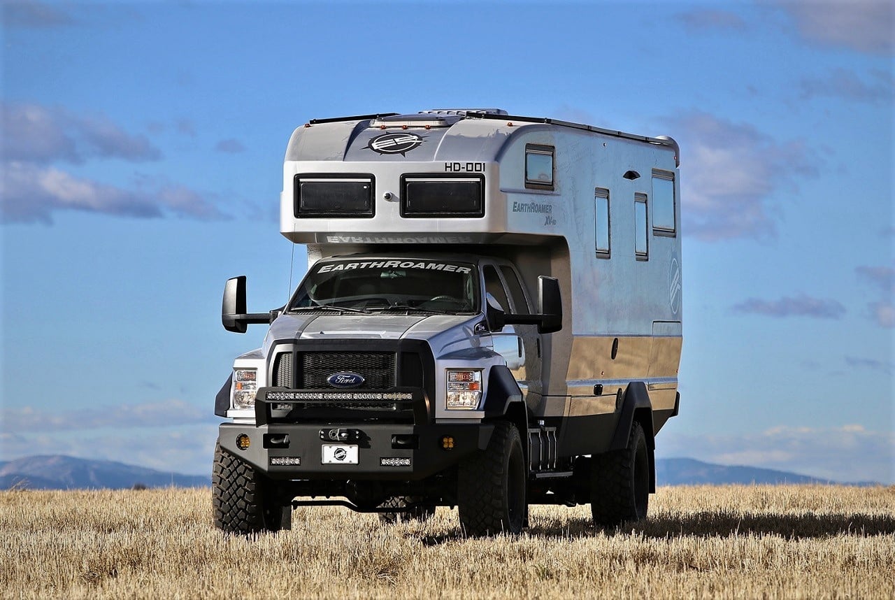 For the ultimate comfort in off-road, off-grid living, EarthRoamer’s new XV-HD camper is nigh unbeatable. Starting with an industrial-grade Ford F-750 truck with a 6.7-liter Turbo V8 diesel engine as a base, the EarthRoamer campers are constructed using many techniques found in yacht making. The vacuum-infused fiberglass body is molded in one piece and foam-insulated to provide year-round occupation in any weather.