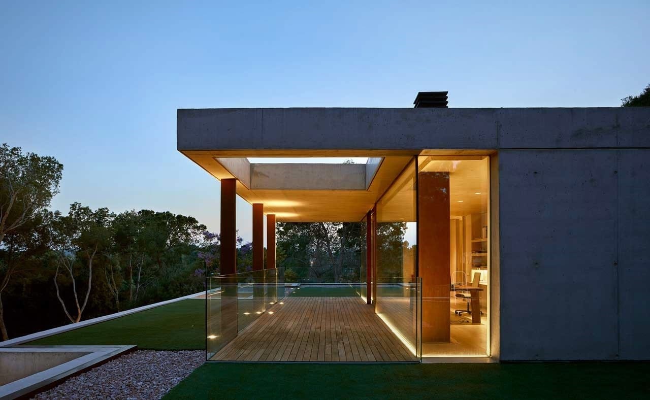 Architect Ramón Esteve has just completed a distinctive home in a suburban region of Spain’s port city of Valencia which he designed to give the appearance of a ‘continuous tiered balcony.’ While the North side of the structure presents a somewhat closed facade against the street, the southern exposure of the home uses natural concrete and floor-to-ceiling glass to make an exceptionally open looking horizontal presence across the landscape.